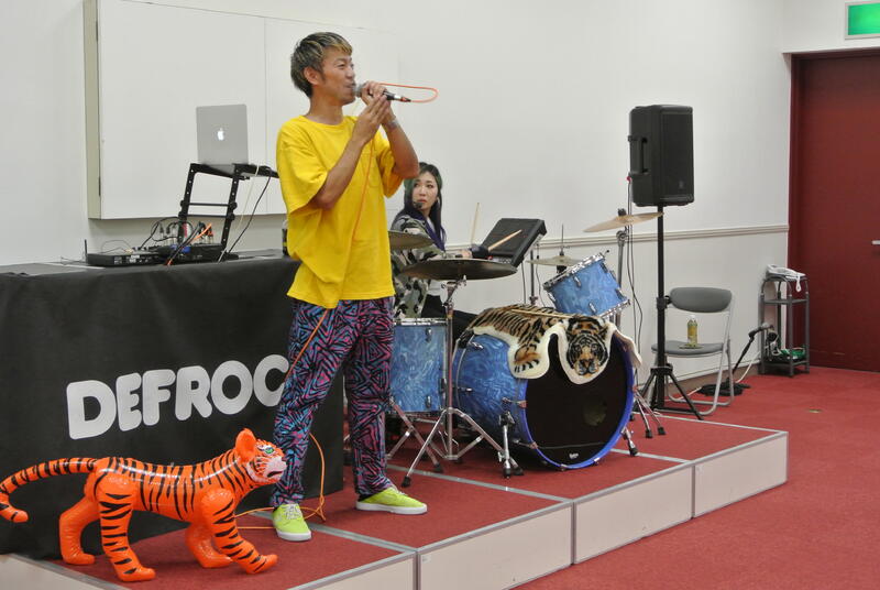 9月21日(水)に初任者研修 市内研修 実地研修が行われました。飯坂温泉観光協会の齋藤利香子さんからは、震災当時、飯坂温泉の人々が避難してきた方々にどのような支援を行ってきたのかをお話ししていただきました。また、DEFROCKのターキンさんこと、安斉果樹園の安齋忠幸さんにも、音楽を通した新たな地域イベントづくり~町おこしを楽しむ~という題でお話と、演奏をしていただきました。
