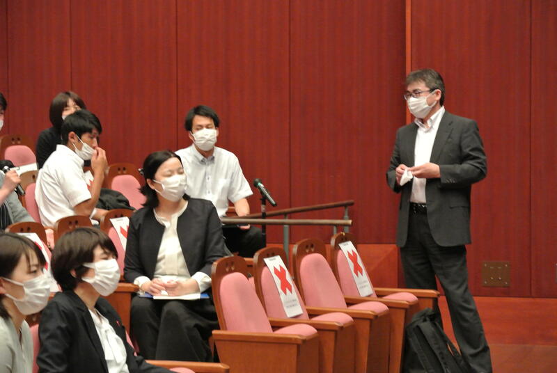 午前中は、教育長講話と教育研修課長講義を行いました。先生方も、緊張気味ではありましたが、自己紹介で「生徒とともに育っていきたい」と教職に対する熱い思いを語る姿がたいへん印象的でした。