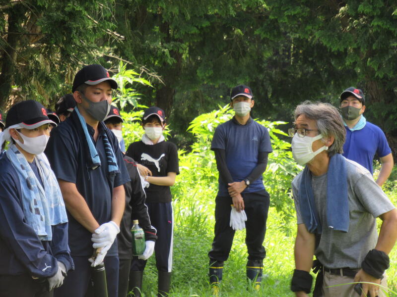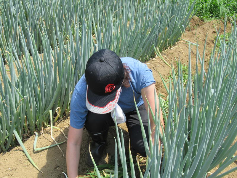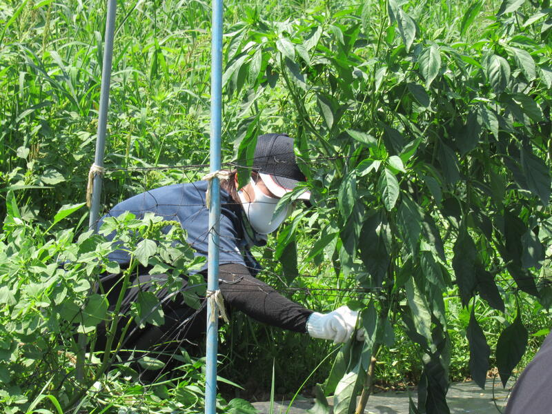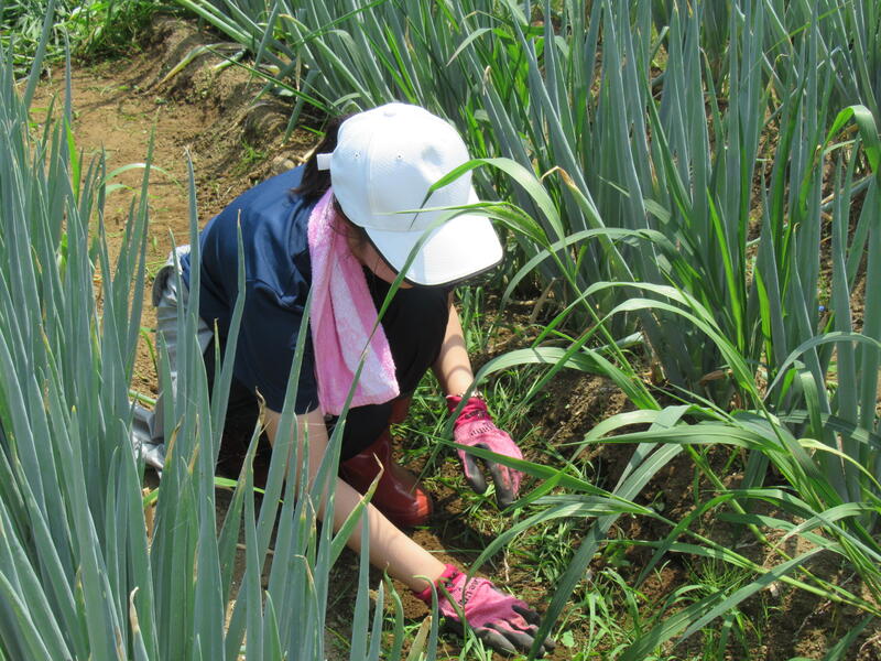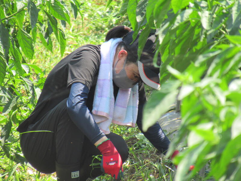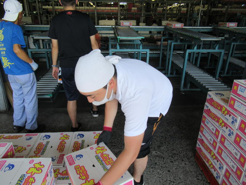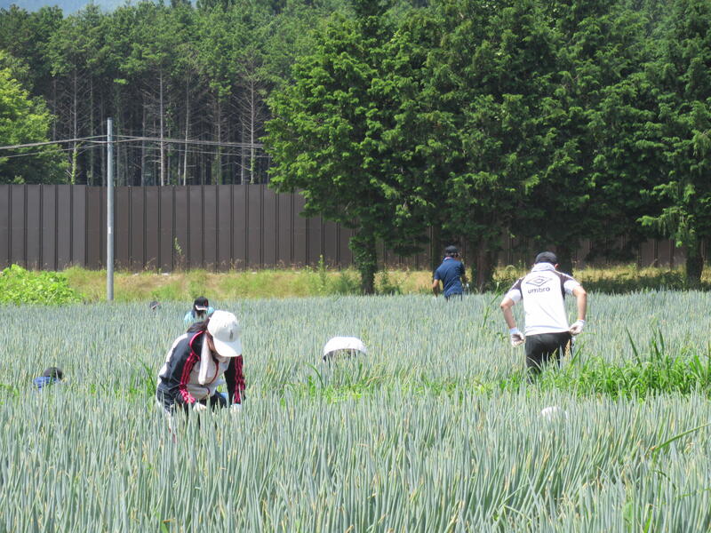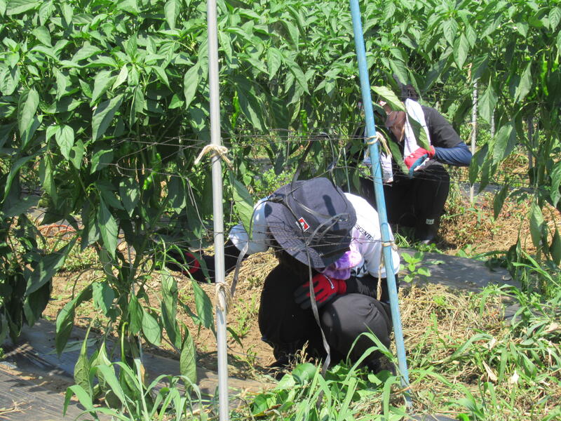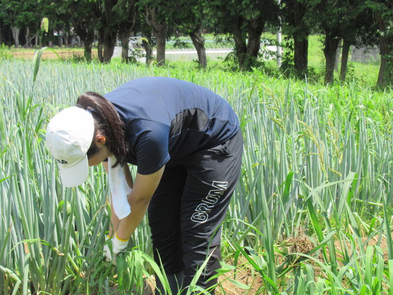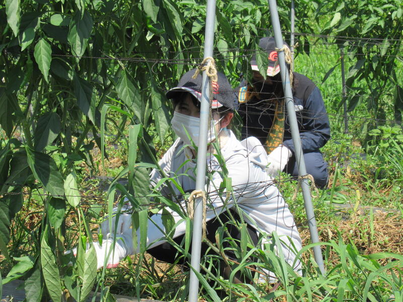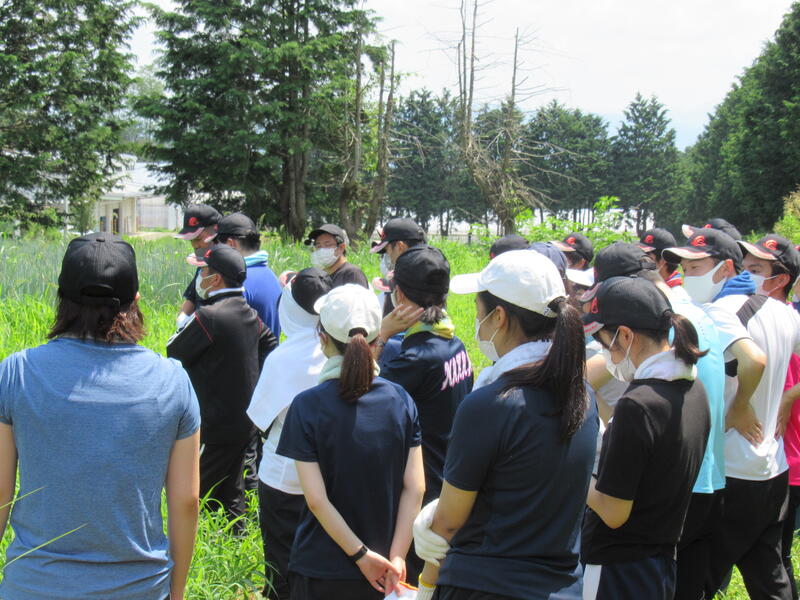 8月5日は「新ふくしまファーム」での農作業体験実習を、6日は「湯野共選場」と「野田共選場」に分かれ、桃の選果作業等の体験実習を行いました。いずれも、ふくしま未来農業協同組合様にご指導をいただきながら研修を行いました。