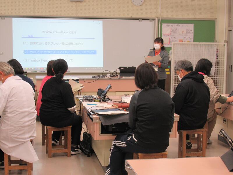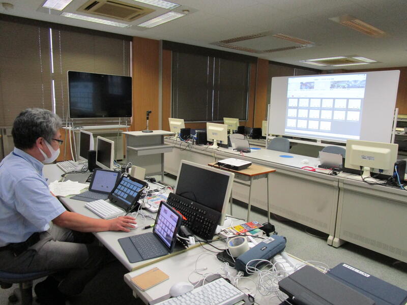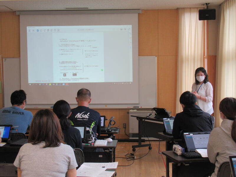 まん延防止等重点措置をうけ、8月31日から9月24日までの期間にタブレット活用訪問研修を予定していた19校は、オンラインでの研修を実施しました。授業支援アプリ(MetaMoJi ClassRoom)の基本操作についての研修を行いました。