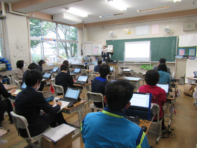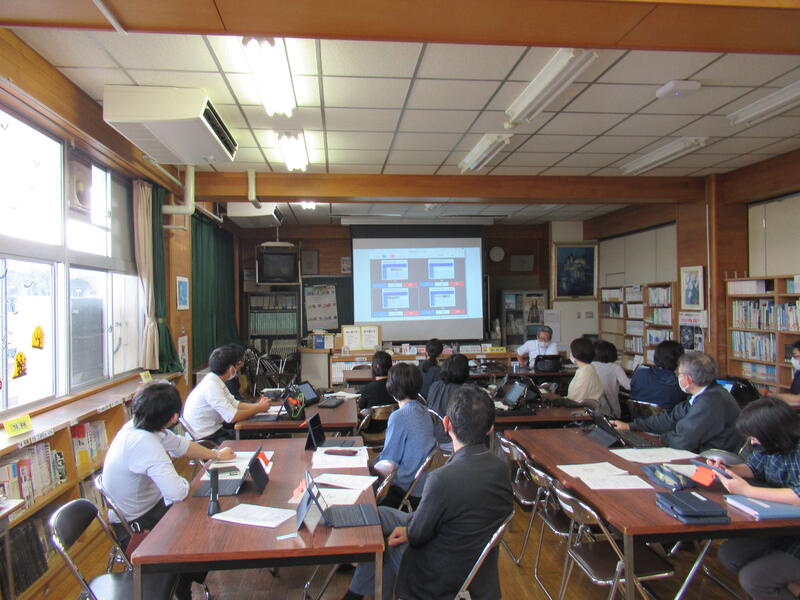 タブレット端末や授業支援アプリ(MetaMoJi ClassRoom)、指導者用デジタル教科書をよりよく活用していくために、福島市内の小・中・特別支援学校にICT指導員が訪問して研修を実施しています。今回は主に授業支援アプリを利用した教材作成の仕方などについて研修を行いました。