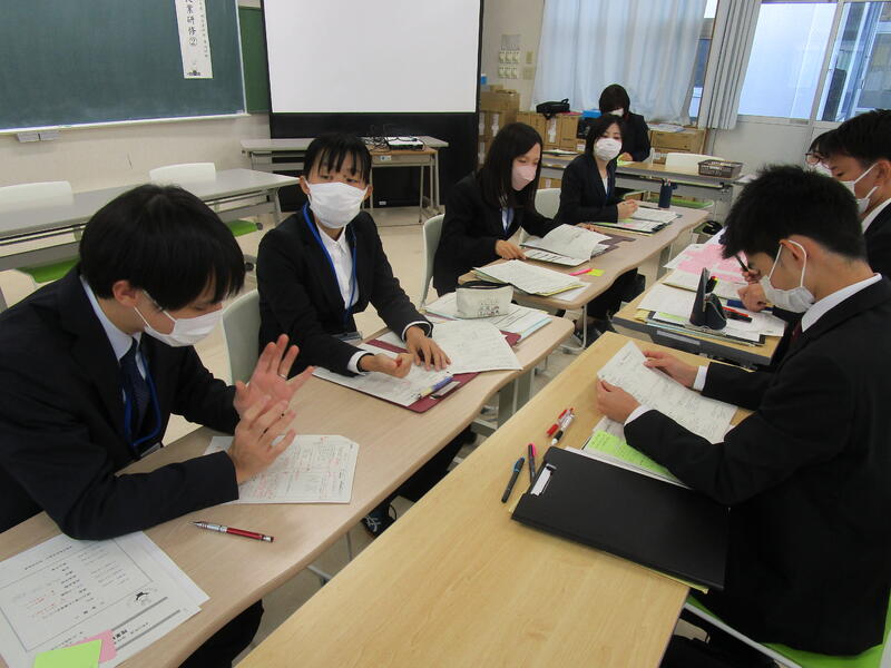 ◇ 授業を提供してくださった村上先生から、本時の授業の細案を見せていただきました。ねらいに迫るために、どのタイミングでどのように発問するのかを入念に考え、授業の準備をされていることが分かりました。そのような準備があるからこそ、生徒が「分かった」「できた」と実感できる授業になるのだと考えました。準備の時間を惜しまず、よりよい授業を目指したいと強く感じました。