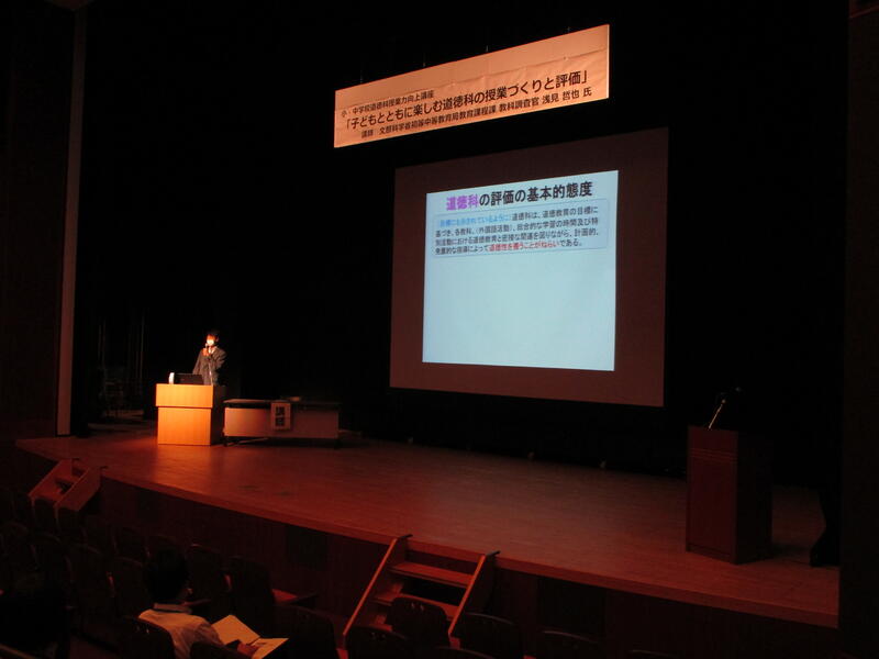 6月25日に文部科学省初等中等教育局教科調査官の浅見哲也氏をお招きして、小・中学校道徳科授業力向上講座を行いました。浅見先生からは、指導の明確な意図をもった授業構想や子どもを認め、励ます評価について、実際の教材を用いて具体的なお話をうかがうことができました。また、ICT端末を効果的に活用した授業の取組についてもご紹介いただきました。