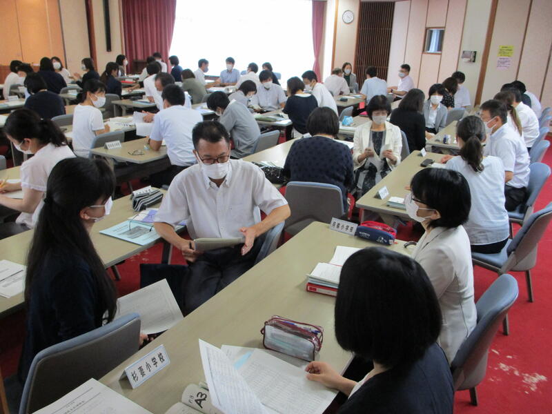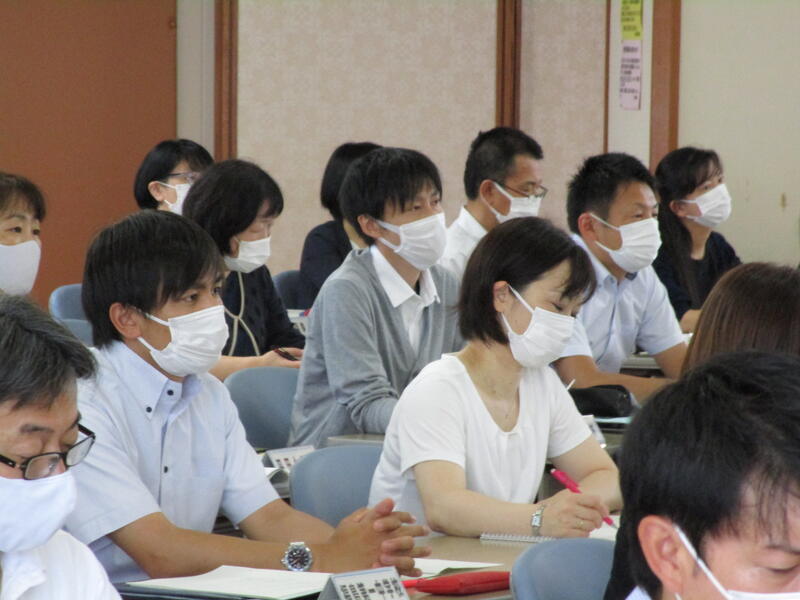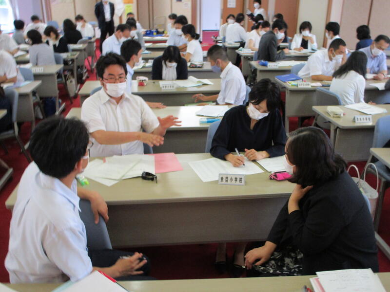 6月29日に研修主任研修会を行いました。教育長からは、自身の経験に基づいた授業についての具体的な講話がありました。その後、行政説明と、各学校における現職教育の取組について、小グループによる情報交換を行いました。