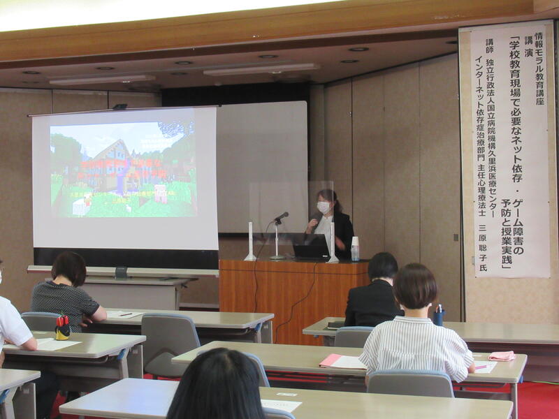 情報化社会で避けては通れない情報モラル教育の実践に向けて,学校現場で必要なネット依存予防や家庭に対する対応等について学ぶため,独立法人国立病院機構 久里浜医療センター 主任心理療法士 三原 聡子 氏を講師に迎え,情報モラル教育講座を7月1日(木)に実施しました。
