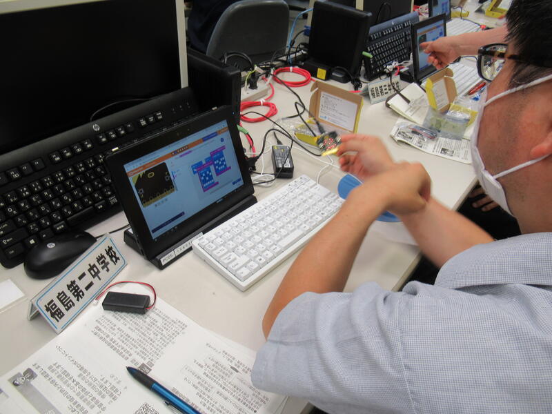 学習指導要領における技術・家庭科(技術分野)の評価についてポイントを確認するとともに,micro:bitを用いた計測・制御の基本的な指導について演習を通して研修を深めました。