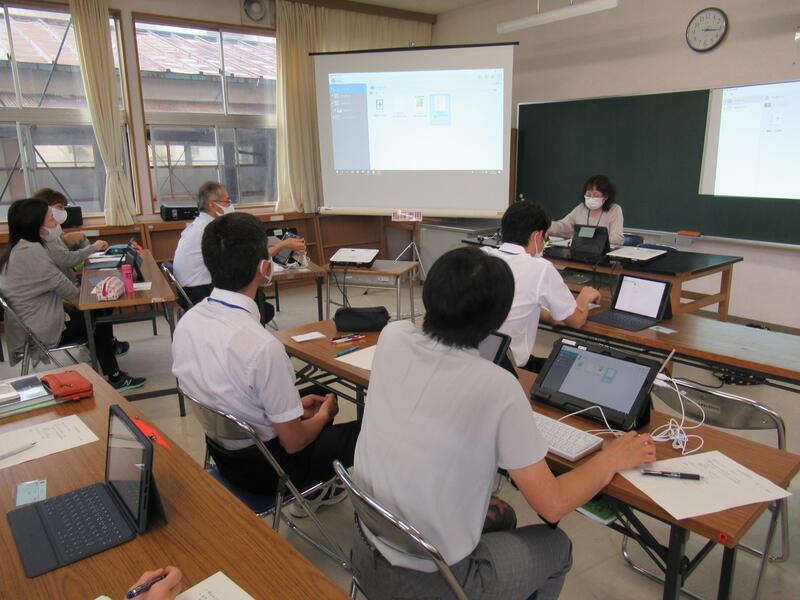 導入されたタブレット端末や授業支援アプリ(MetaMoJi ClassRoom)、指導者用デジタル教科書をよりよく活用していくために、福島市立小・中・特別支援学校にICT指導員が訪問して研修を実施しています。