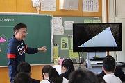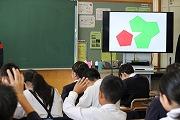 ◇黒澤教諭の授業を参観させていただき、児童が意欲的に学ぶために教師はどのように働きかけたらよいかについて学ぶことができた。児童に「三角形の内角の和は本当に180度になるのか。」という問いをもたせるために、様々な図形を敷き詰める操作活動を多く取り入れたり、児童が迷いなく活動に取り組めるように画像やテレビモニターで活動の手順を示したりしており、本時のねらいを達成するために様々な手立てを講じていることが分かった。