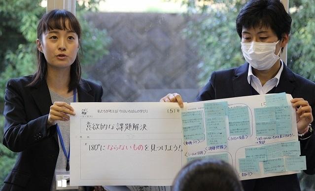 ◇一番の学びとなったのは、意欲を高める教材の準備や、先生の言葉かけです。たくさんの三角形の中から内角が180度にならないものを見つけようと必死になって取り組んでいる姿を見て、実態を把握して、教材を準備する大切さを改めて実感しました。また、子どもの考えに対して揺さぶりをかけることで考えを深めさせていて、そのような追究を促す言葉かけを実践していきたいと感じました。
