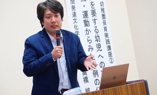 平成30年10月24日(水)、福島大学人間発達文化学類准教授 高橋純一氏を講師にお迎えして、「平成30年度幼稚園保育実践講座②」を開催しました。演題「特別な支援を要する幼児への支援」のもと、感覚・知覚・運動からみた事例の分析を通して、発達に課題を抱える子どもにどのような支援を行っていくことが大切であるかを学びました。
