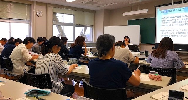 平成30年度8月28日(火)、県立医科大学放射線医学県民健康管理センター・災害こころの医学講座特命准教授 後藤紗織氏をお迎えして、「平成30年度第2回通級指導教室担当研修会」を開催しました。学習障がいのある児童生徒への読み書き指導について丁寧にご指導いただき、研修者は、音韻意識、特殊音節など読み・書きの発達、その指導と評価について学びを深めました。