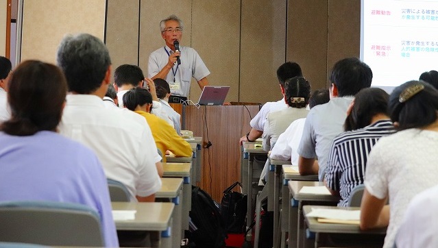 平成30年8月30日(木)、福島市市民安全部危機管理室次長 紺野広幸氏、防災専門官 長谷川仁氏を講師にお迎えし、平成30年度防災教育研修会を開催しました。福島市で想定される災害についての防災・減災対策、学校防災教育について、具体例を示しながらご講話いただきました。行政の方のお話を伺うことで、福島市における警報発令の仕組み、災害発生時の具体的対応等について理解し、学校で行うべき防災教育について考える機会となりました。
