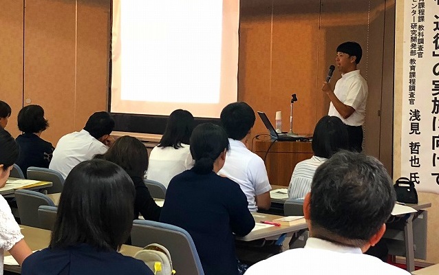 平成30年8月31日(金)、文部科学省初等中等教育局教育課程課教科調査官の浅見哲也氏を講師にお迎えして、平成30年教育課題講座②~豊かな心の育成~を開催しました。「特別の教科 道徳」の実現に向けて変わること・変わらないこと、考え議論する道徳科の授業づくりについて、先生ご自身の実践例をもとに具体的にご講話いただきました。85名の研修者は、明確な意図をもった道徳科の授業のあり方や道徳科に求められる評価について学びを深めました。