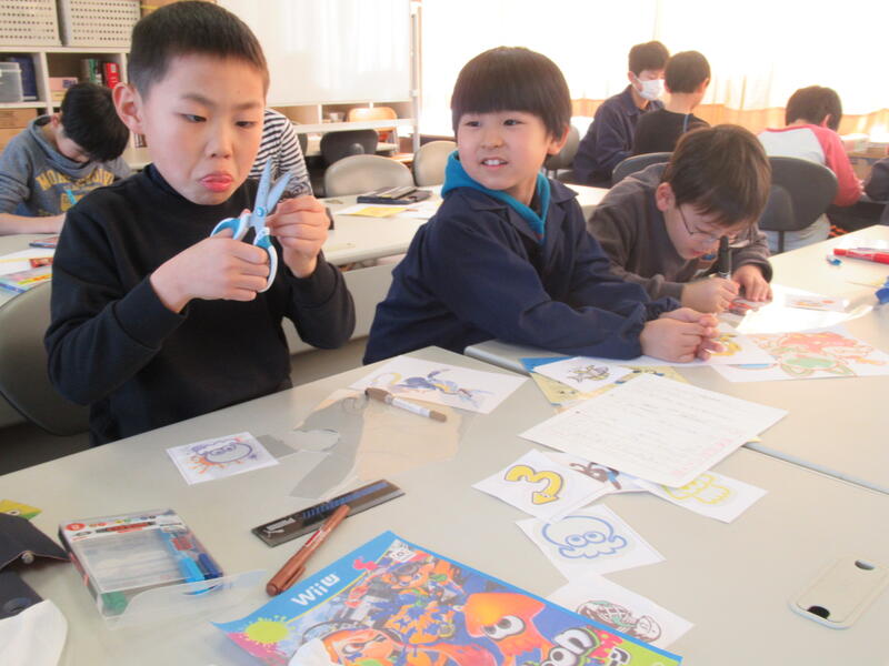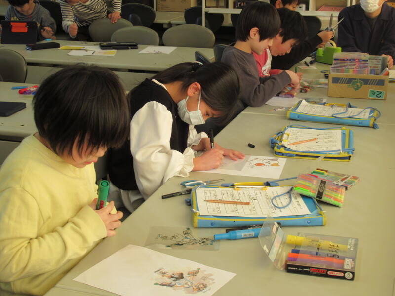 イラストクラブでは、プラバンを使って、キャラクターの絵をかき、キーフォルダーづくりをしました。