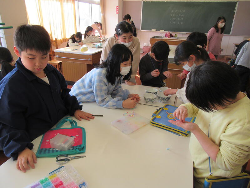 手作りクラブは、本のしおりづくり、ビーズのブレスレットづくり、プラバンのキーホルダーづくりをしました。