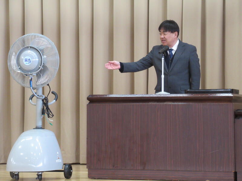 2024年2月26日 14時16分本日、佐藤工業株式会社様より「ミスト扇風機」のご寄贈がありました。