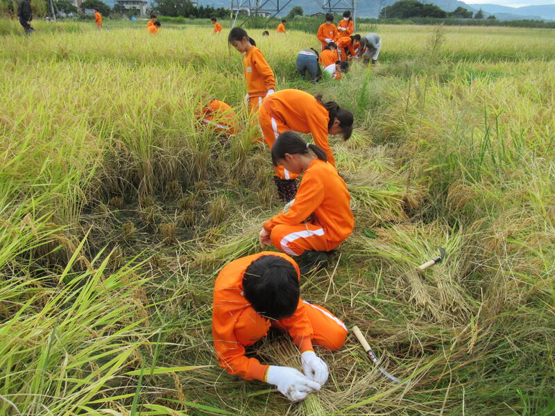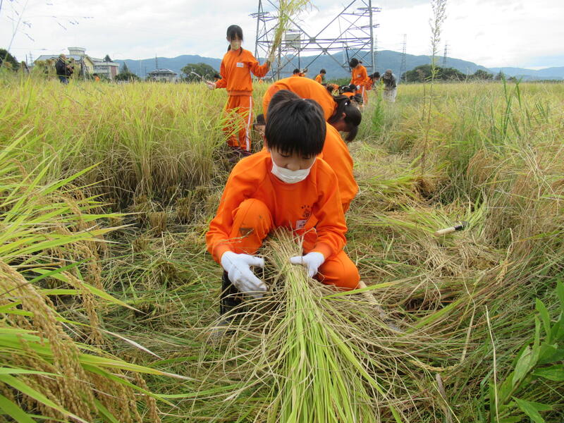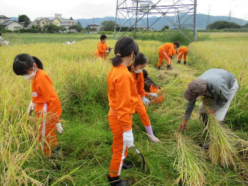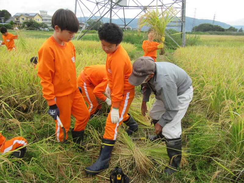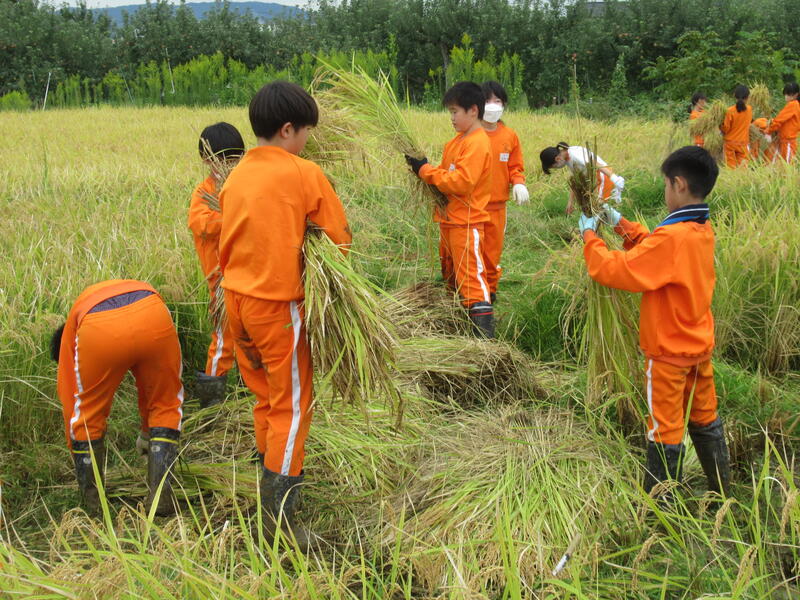 本日、10月5日、5年生は、田んぼの稲刈りをしました。