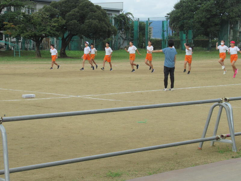 6年生特設陸上部は、10月4日に開催予定の陸上競技大会に向けて練習に取り組んでいます。
