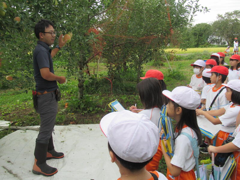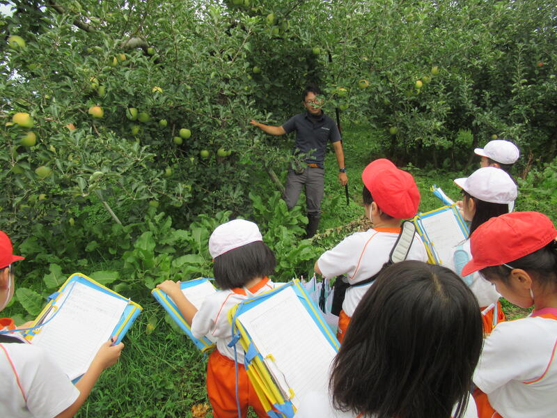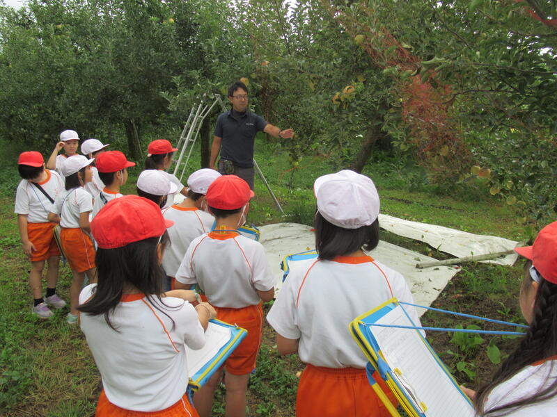 本日、3年生は、総合的な学習の時間にリンゴ畑の観察に行きました。