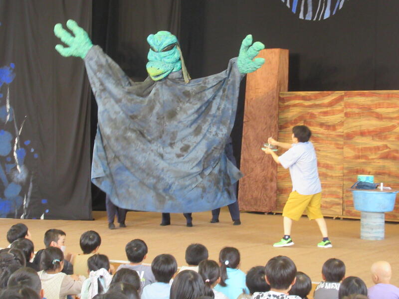 劇団風の子関西の劇団の皆さんによる「がんばれ!かわず君」という演劇です。