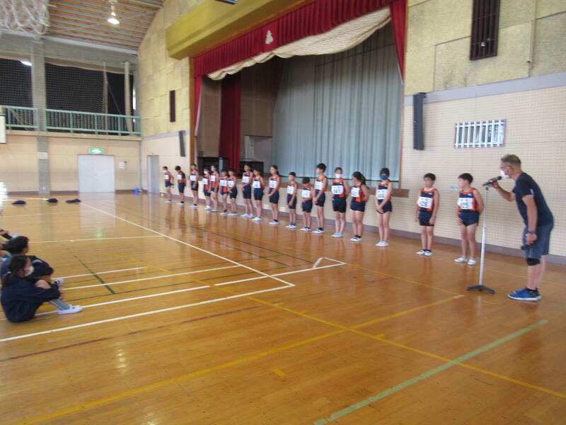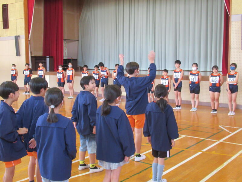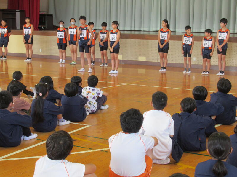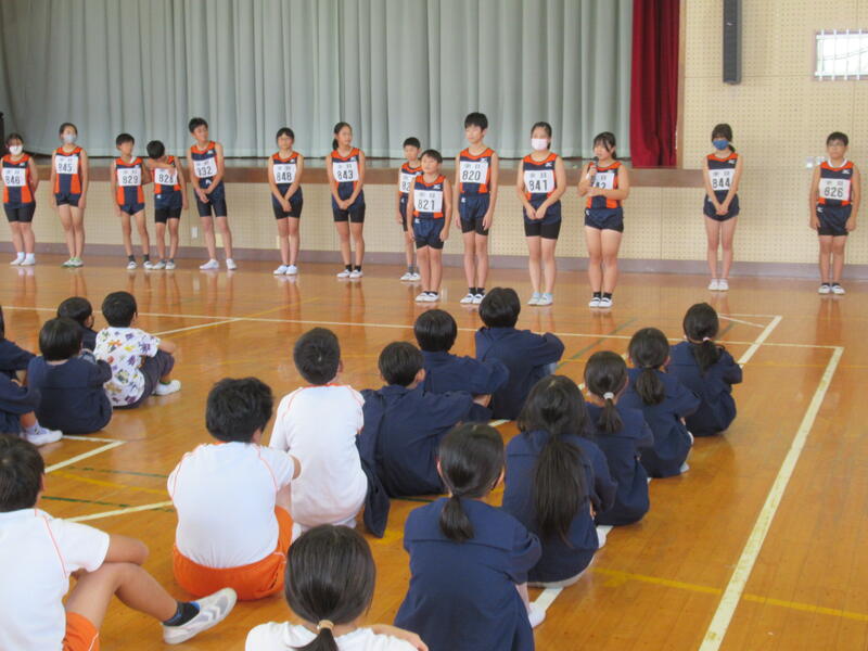 本日の昼の集会は、陸上競技大会の壮行会でした。