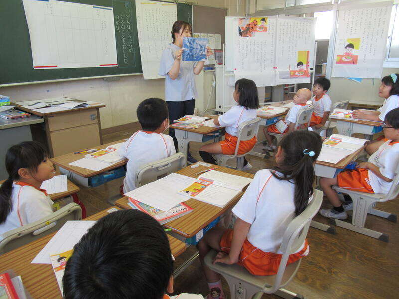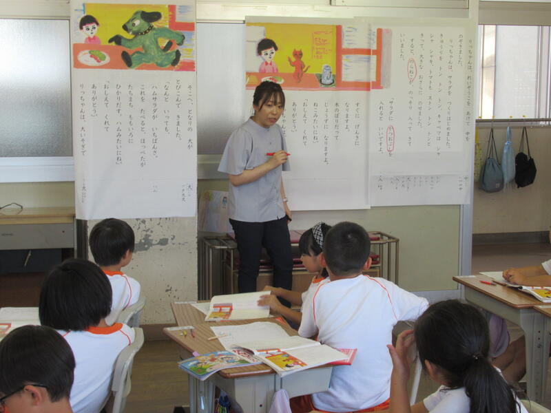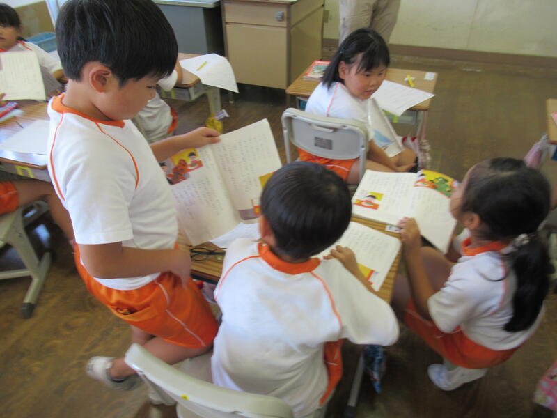 子どもたちは、登場人物の順序を確かめながら、アドバイスしたことを読み取りました。