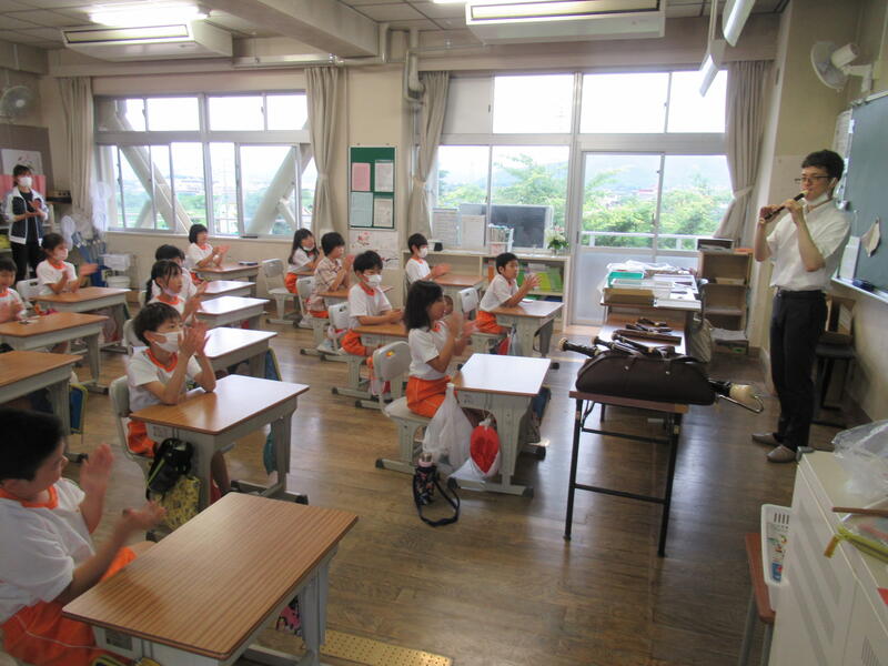 子どもたちは、手拍子しながら演奏を楽しみました。