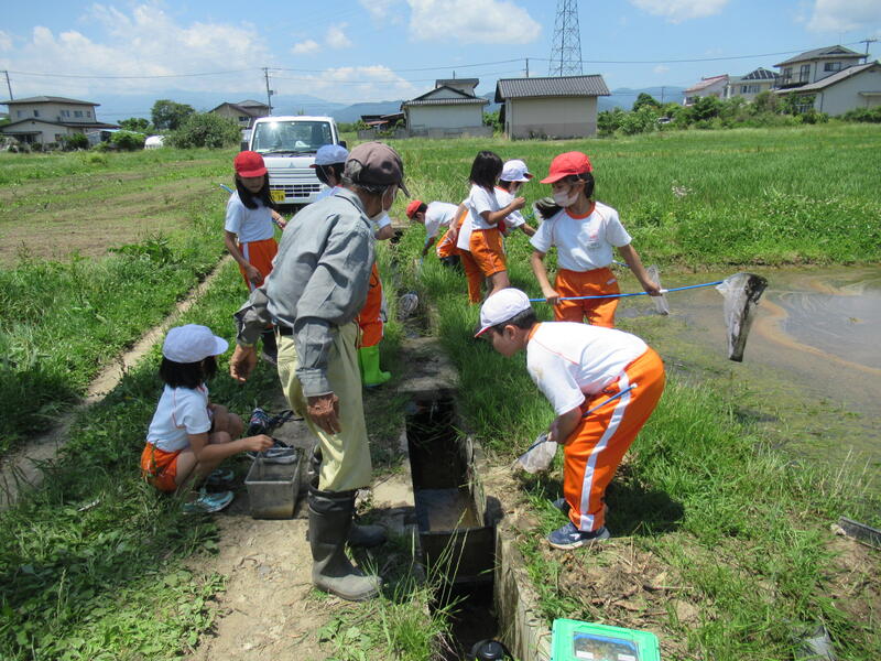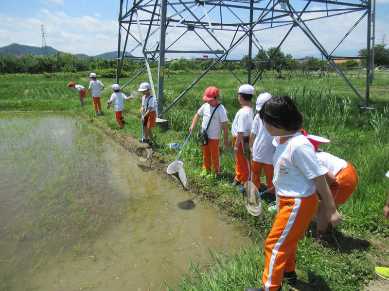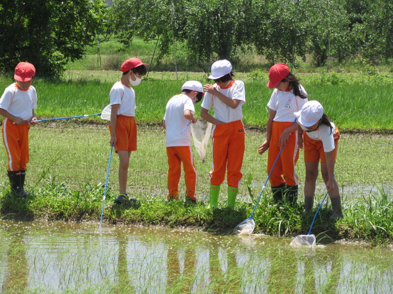 栃窪さんの田んぼに行って、「田んぼにすむす生き物調べ」を行いました。