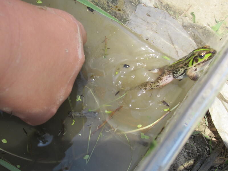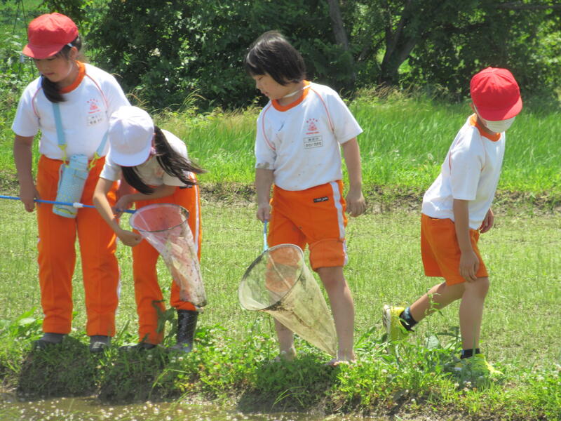 栃窪三男さんのご指導のもと、カエル、おたまじゃくし、ザリガニ、ヤゴ、小魚、など…