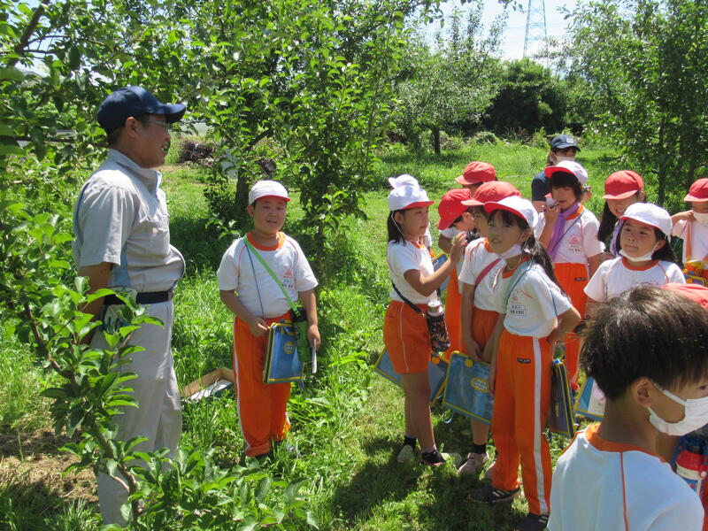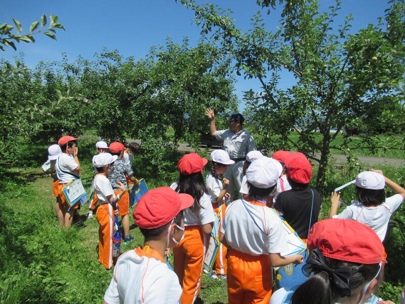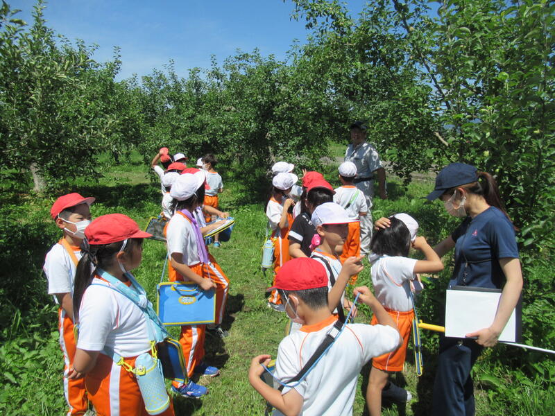 本日、3年生は、総合的な学習の時間にリンゴ畑の観察に行きました。