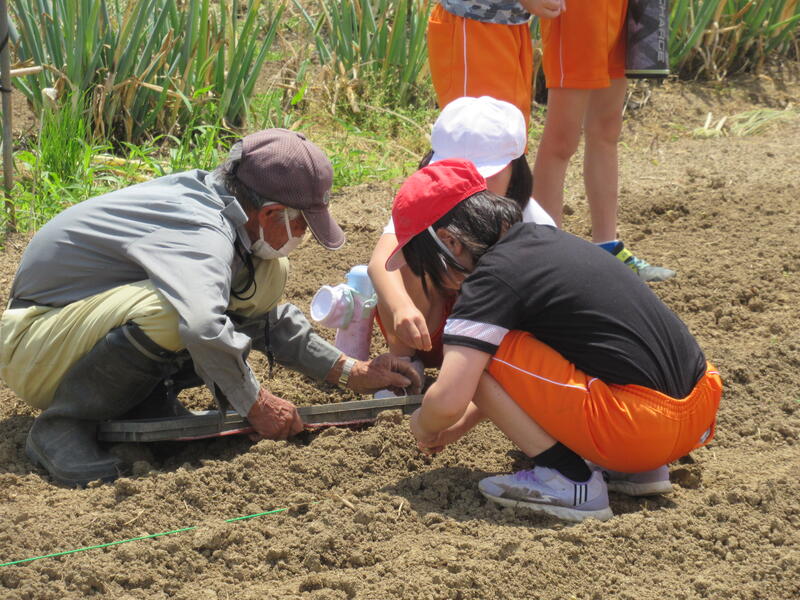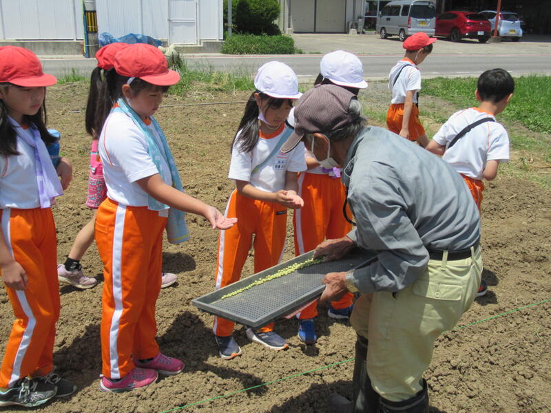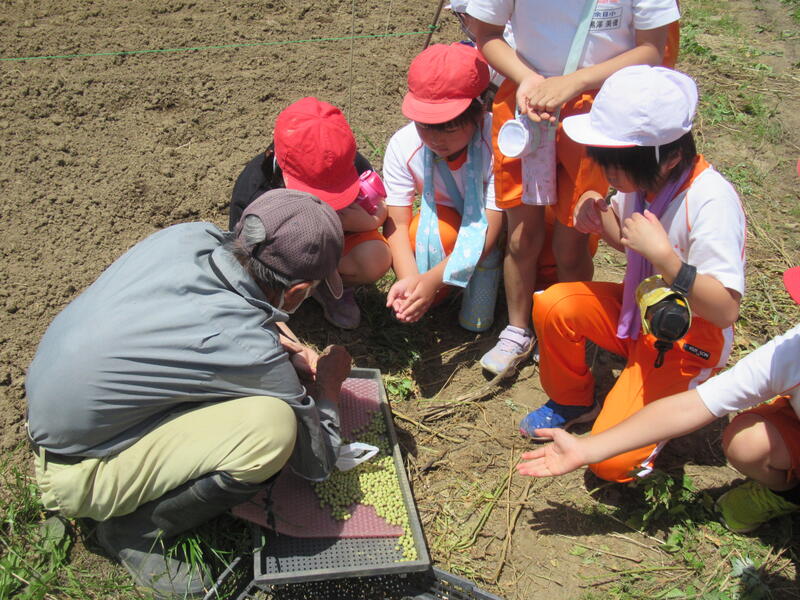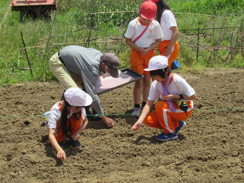 また、帰りには、特別非常勤講師の栃窪三男さんの畑で枝豆の種を植えました。