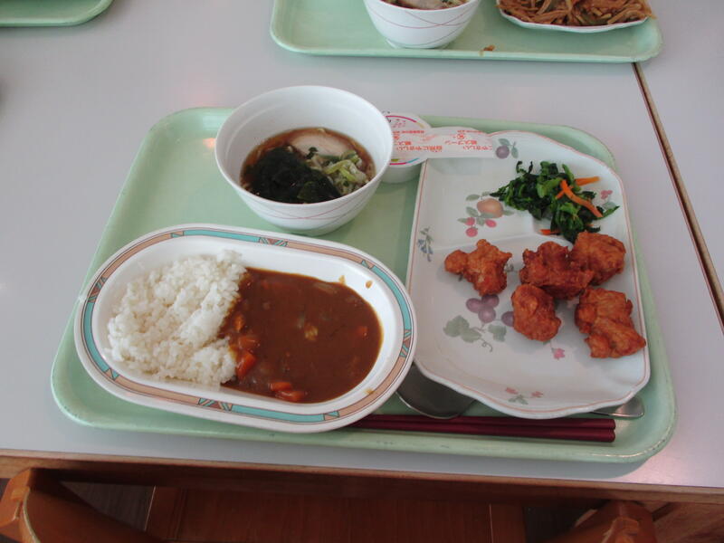 入所の集いをして、昼食(カレー・ラーメン・唐揚げ)を食べました。