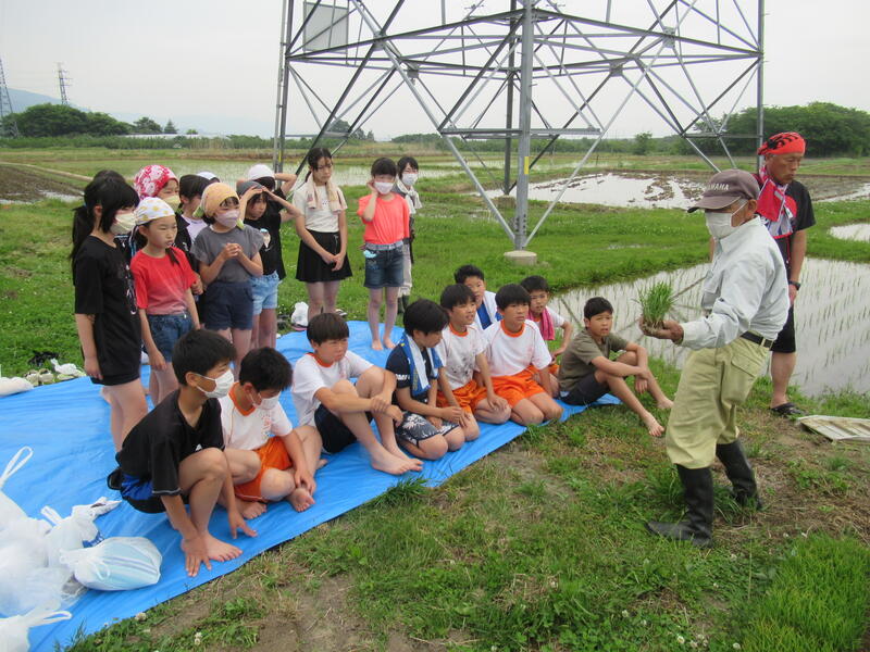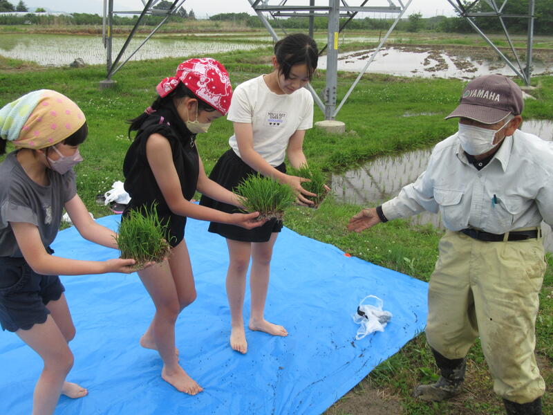 特別非常勤講師の栃窪三男さんから田植えの仕方について教えていただきました。