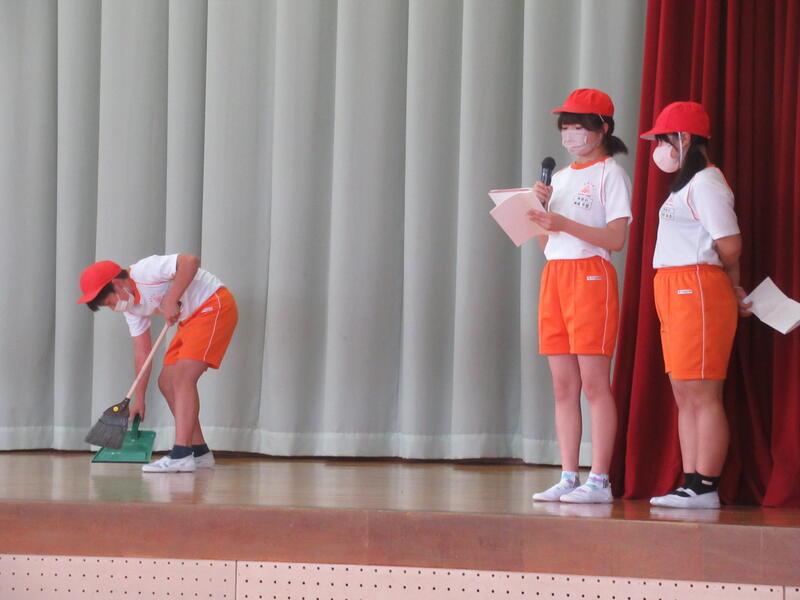 6年生の皆さんが、正しい清掃の仕方を演じて見せてくれました。