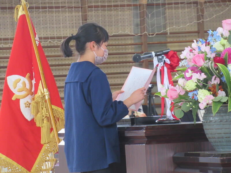 入学式では、6年生代表児童が歓迎の言葉を述べました。