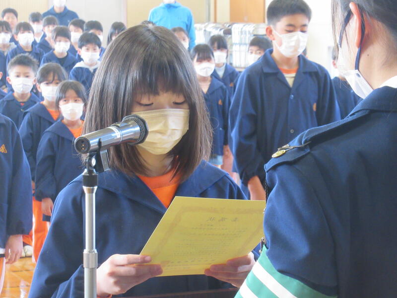 身の引き締まる思いで「宣誓書」を読み上げる6年生。