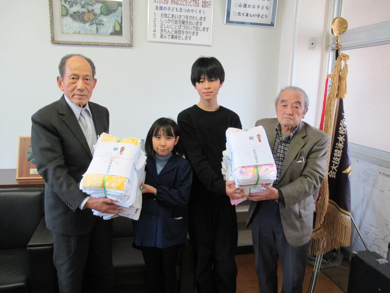 環境委員会に200枚の雑巾を手渡ししてくださいました。
