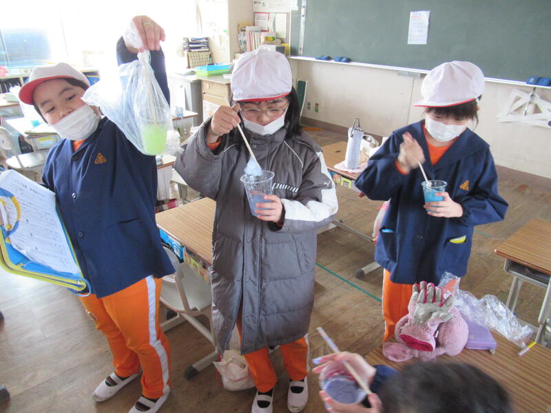 自然科学クラブでは、スライム作り。