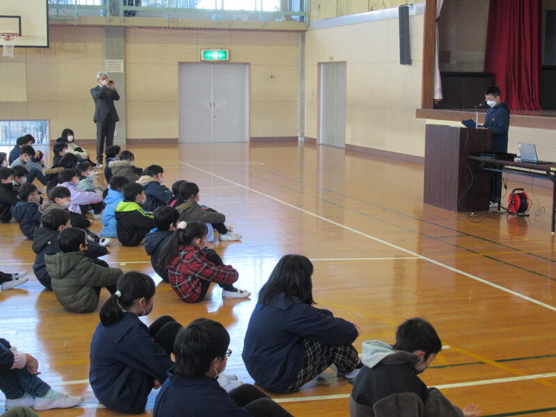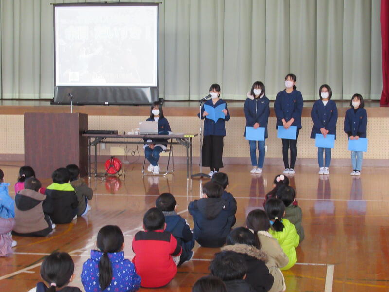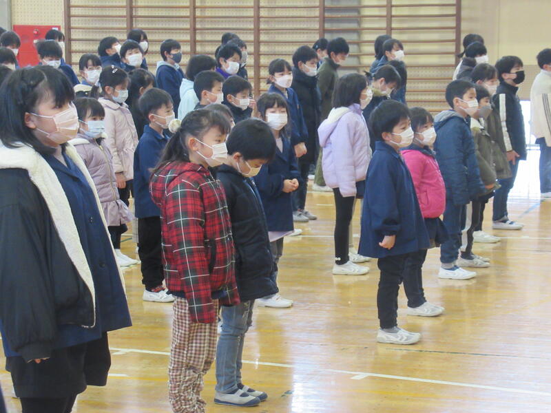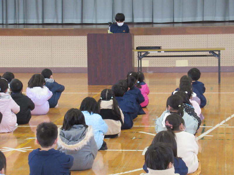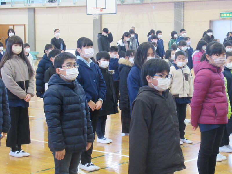 始業式では、代表児童が冬休みの思い出や3学期の目標を発表しました。