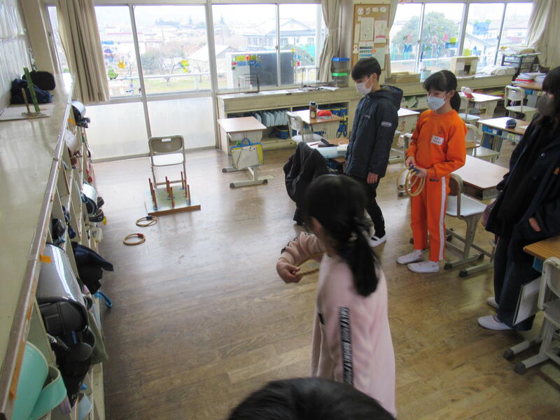 かるたや輪投げ、フルーツバスケットやハンカチ落とし、鬼ごっこなど、それぞれの班にお任せです。