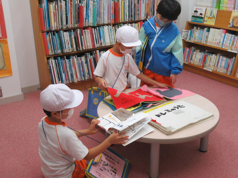 紙芝居を見たり、今日の給食の食材を考えたりして、