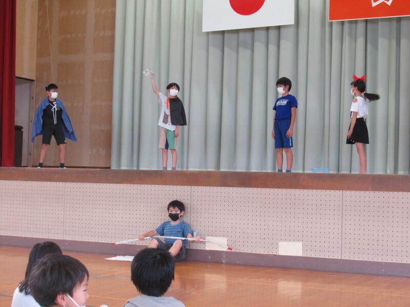 健康委員会からコロナ対策について劇やクイズの発表がありました。