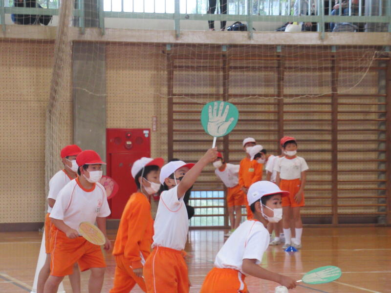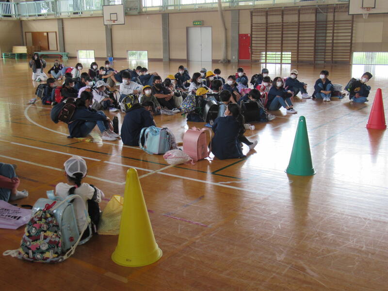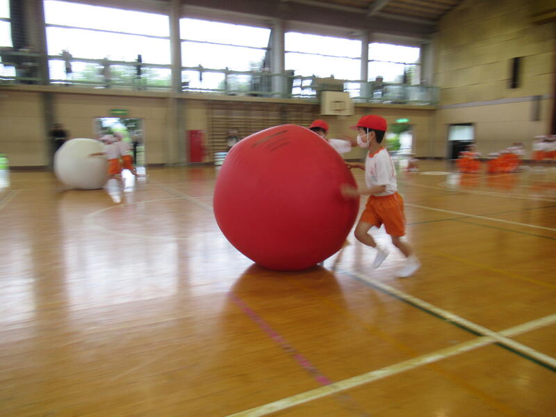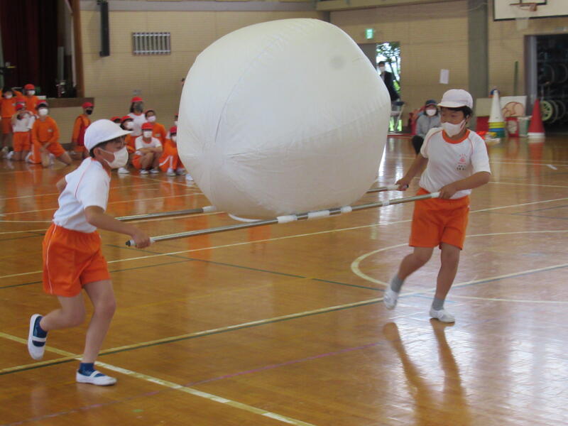 苦肉の策で、天候に合わせ、前半は体育館、後半は校庭で行いました。