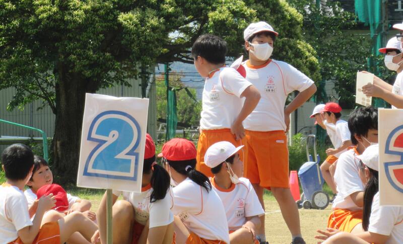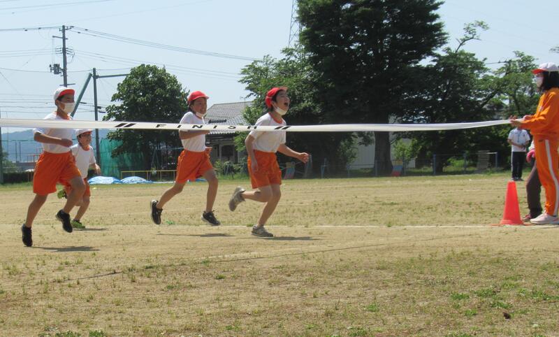 観客の応援のない徒競走でしたが、学年ブロックで讃え合いました。
