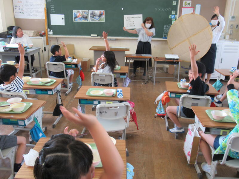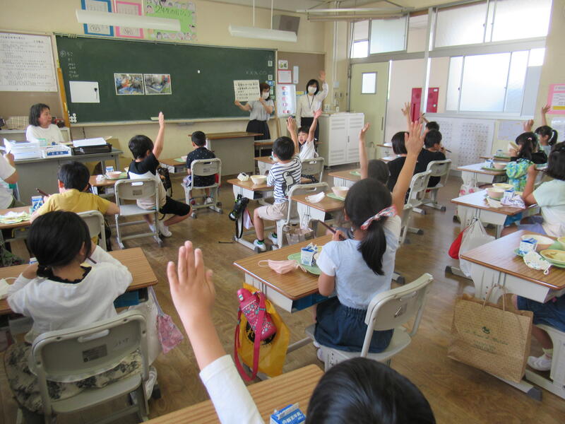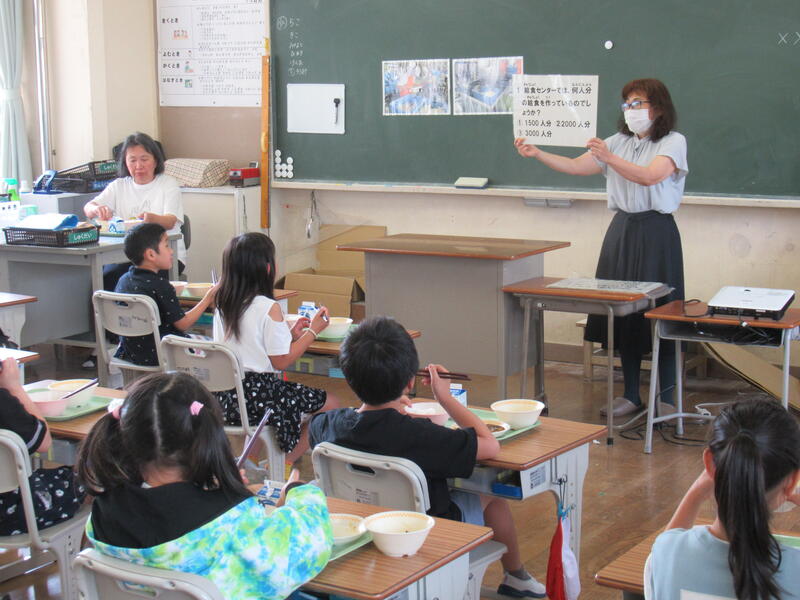 給食の時間、北部給食センター長様と栄養技師の先生がお見えになり、