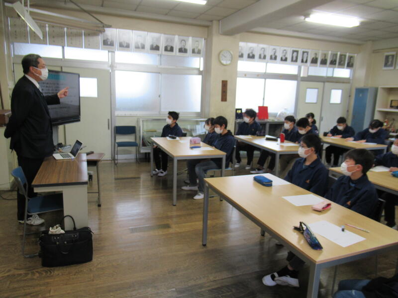 2月15日(火)、北信中学校長 千葉英一校長先生にご来校いただき、
