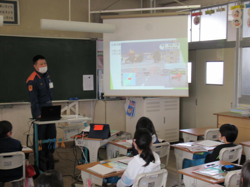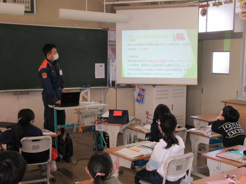 消防署や消防団のはたらきについて出前授業を受けました。