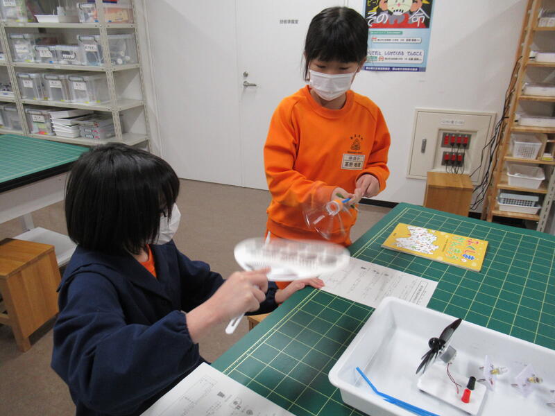 また、風力発電の実験、シアター見学も行いました。