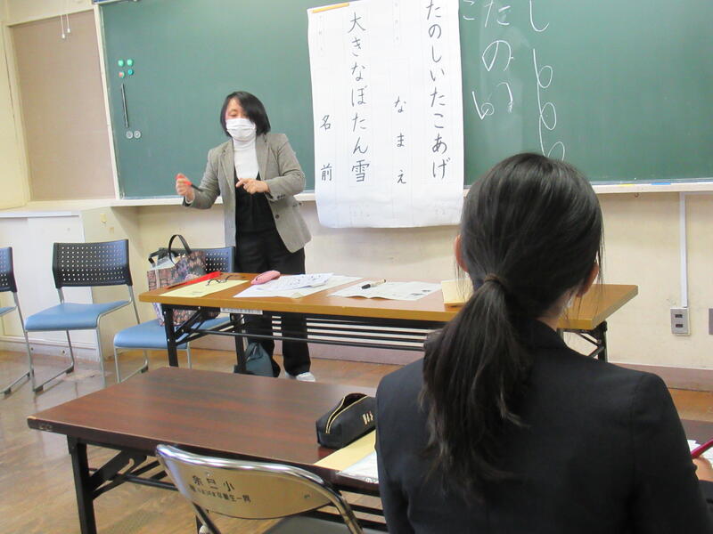 講師の先生は、1・2年生の硬筆を庭坂小学校の佐藤英子先生、