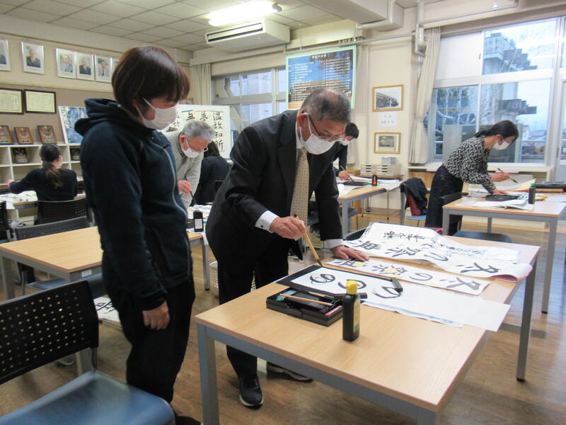 書きぞめ展の課題をもとに、実技の研修を行いました。
